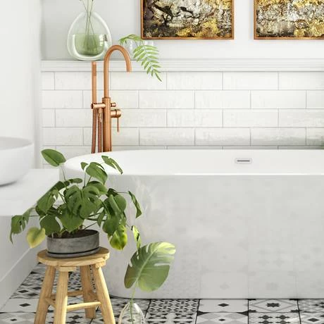 The Luxury Arezzo Brushed Bronze Freestanding Bath Tap with Shower Mixer blends practicality with sleek contemporary style. Its clean lines and streamlined shape are a sophisticated complement to your freestanding bathtub, while the warm brushed bronze finish creates an eye-catching contrast against white fixtures and tiles. This design features a simple lever handle tap so you can quickly set water temperature, along with a slim handheld shower head that’s easy to move thanks to its flexible 1500mm hose. It’s contemporary round appearance integrates seamlessly into any modern bathroom.Â