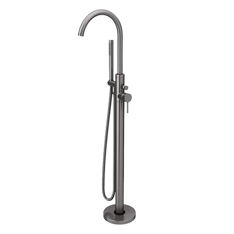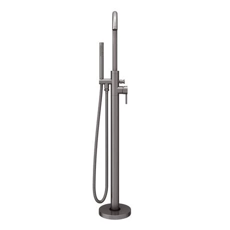 The Arezzo Gunmetal Grey Freestanding Bath Tap with Shower Mixer blends practicality with sleek contemporary style. Its clean lines and streamlined shape are a sophisticated complement to your freestanding bathtub, while the brushed gunmetal grey finish create an eye-catching contrast against white fixtures and tiles. This design features a simple lever handle tap so you can quickly set water temperature, along with a slim handheld shower head that’s easy to manoeuvre thanks to its flexible 1500mm hose. It’s contemporary round appearance integrates seamlessly into any modern bathroom.