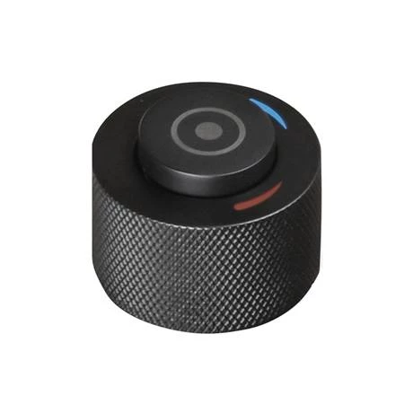 - Circular handle with a tactile knurled grip