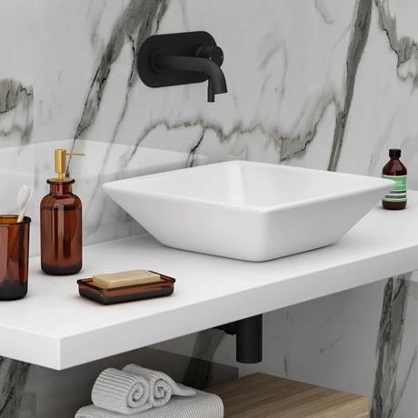 The modern Arezzo round wall mounted basin mixer, manufactured from brass with a stunning matt black finish. The Arezzo matt black range is characterised by it’s stylish curved face plate and spout with a matching single lever tap head providing control for flow and temperature. It’s sleek minimalist design makes this tap well suited for any style of bathroom.