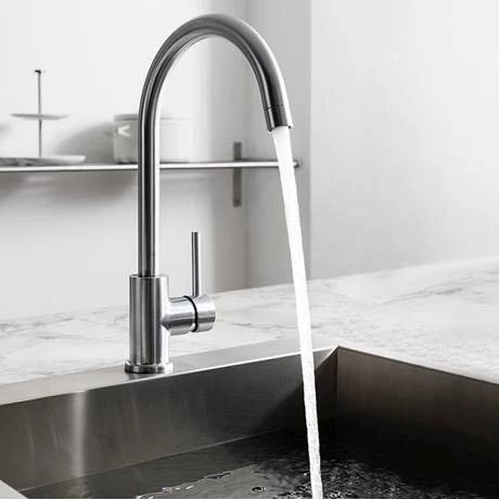 The modern Crosswater Brushed Stainless Steel Tropic side lever control kitchen mixer is perfect for adding designer style to your kitchen. Part of the Tropic kitchen brassware range offering exceptional design and styling with outstanding performance across the collection. Suitable for medium pressure 0.5 bar.
