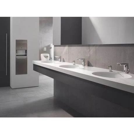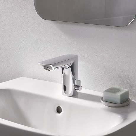 The Grohe Bau Cosmopolitan E Infra-Red Electronic Basin Mixer features a mixing device and adjustable temperature limiter and an infrared sensor for bi-directional communication for monitoring, configuration and servicing. Being sensor controlled it provides a hygienic touch free system and is a great addition to any modern bathroom. The mixer is powered by a 6V lithium battery that will last up to 7 years. Manufactured from high grade ABS and finished in GROHE StarLight chrome coating that is scratch resistant and easy to clean.