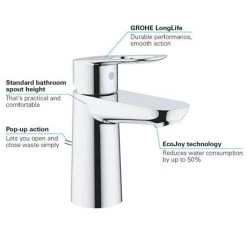 Grohe BauLoop S-Size Mono Basin Mixer with Pop-up Waste – 23335000