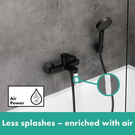 The harmonious design of Vernis Blend, with its gentle curves, has a modern and elegant look. This Vernis Blend exposed single lever bath shower mixer is an eye-catcher in any modern bathroom. AirPower technology adds generous amounts of air to the water, creating a soft, splash-free spray. Crafted from high quality materials and beautifully finished in durable Matt Black.