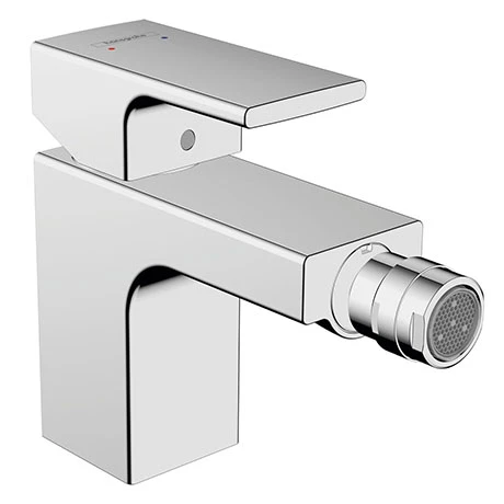 The geometric Vernis Shape variant, with its precise edges, stands for a visually striking look. This single lever bidet mixer offers an economical way of adding designer elegance to your bathroom. AirPower technology adds generous amounts of air to the water, creating a soft, splash-free spray while EcoSmart technology reduces the flow rate to save water and energy.