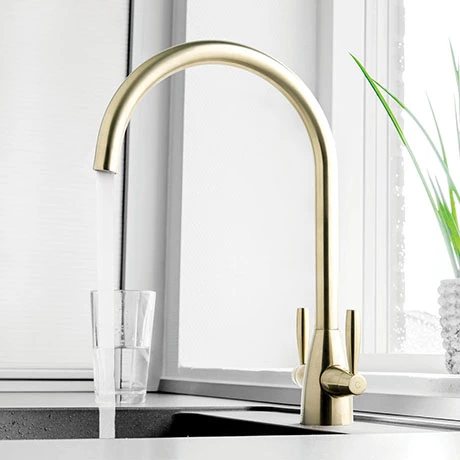 The JTP Blink kitchen sink mixer is guaranteed to add a splash of luxury into your kitchen. The tap comes in a sleek brushed brass finish and features a swivel spout ideal for twin bowl sinks. Its dual lever handles softly turn to control the desired water flow while the solid construction of the tap ensures a long life and durable product.
