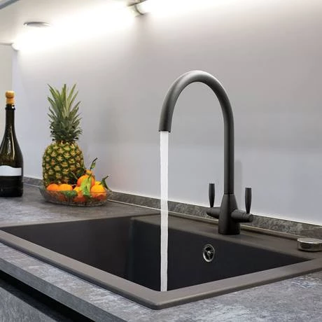 The JTP Blink kitchen sink mixer is guaranteed to add a splash of luxury into your kitchen. The tap comes in a sleek matt black finish and features a swivel spout ideal for twin bowl sinks. Its dual lever handles softly turn to control the desired water flow while the solid construction of the tap ensures a long life and durable product.
