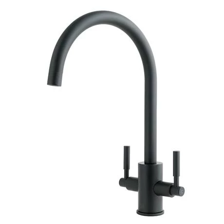The JTP Newbury kitchen sink mixer is guaranteed to add a splash of luxury into your kitchen. The tap comes in a sleek matt black finish and features a swivel spout ideal for twin bowl sinks. Its dual lever handles softly turn to control the desired water flow while the solid construction of the tap ensures a long life and durable product.