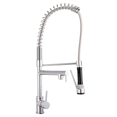 The Monda Tall Kitchen Tap with Riser and Pan Filler makes a versatile addition to larger sinks. It features two practical outlets – a pull out spout on a flexible hose, putting you in full control of the water’s direction, as well as a swivel tap that’s handy for cleaning bulkier items such as saucepans. Crafted from durable brass with a polished chrome finish, this 578mm high kitchen tap is built to withstand daily use.
