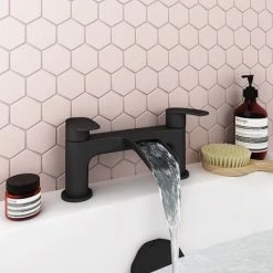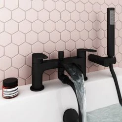 Valencia Matt Black Waterfall Bath Shower Mixer incl. Shower Kit